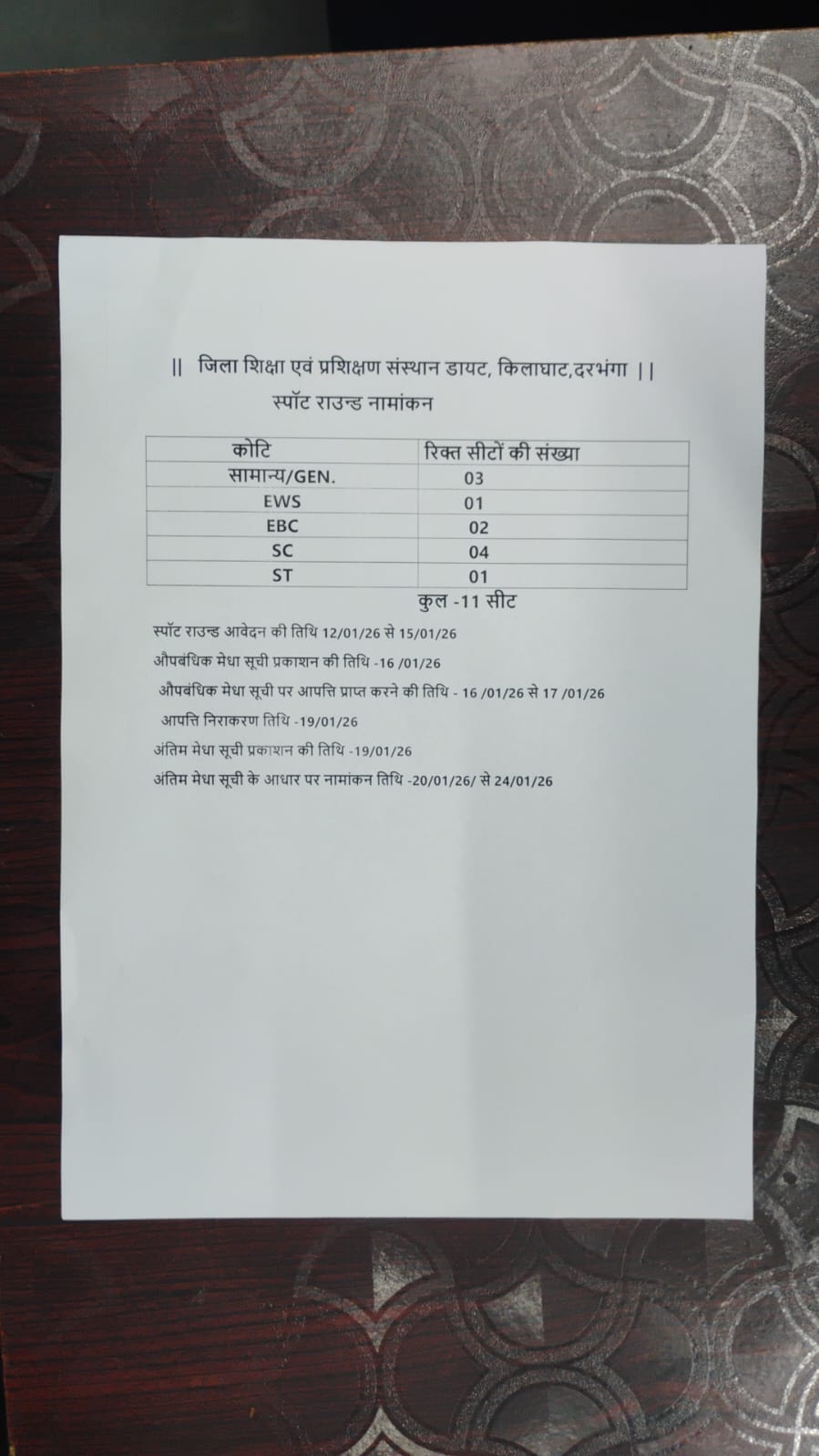 SPOT Admission List औपबंधिक मेधा सूची पर आपत्ति प्राप्त करने की तिथि 16/01/ 26 से 17 /01/ 2026